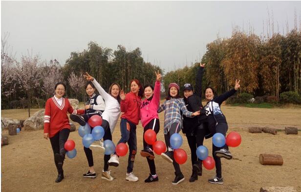 接下来,进行整队活动分组,开始“熙和阳光,自由飞翔”三.八妇女节主题趣味活动:“双人背靠抱团踩气球、分组运乒乓球接力赛、单人跳绳比赛等项目,让现场气氛紧张激烈,队员们热情高涨,使出浑身解数,斗智斗勇,力争上游,各组队员纷纷为所在队伍加油打气,整个活动现场洋溢着热情、喜悦的热闹氛围。