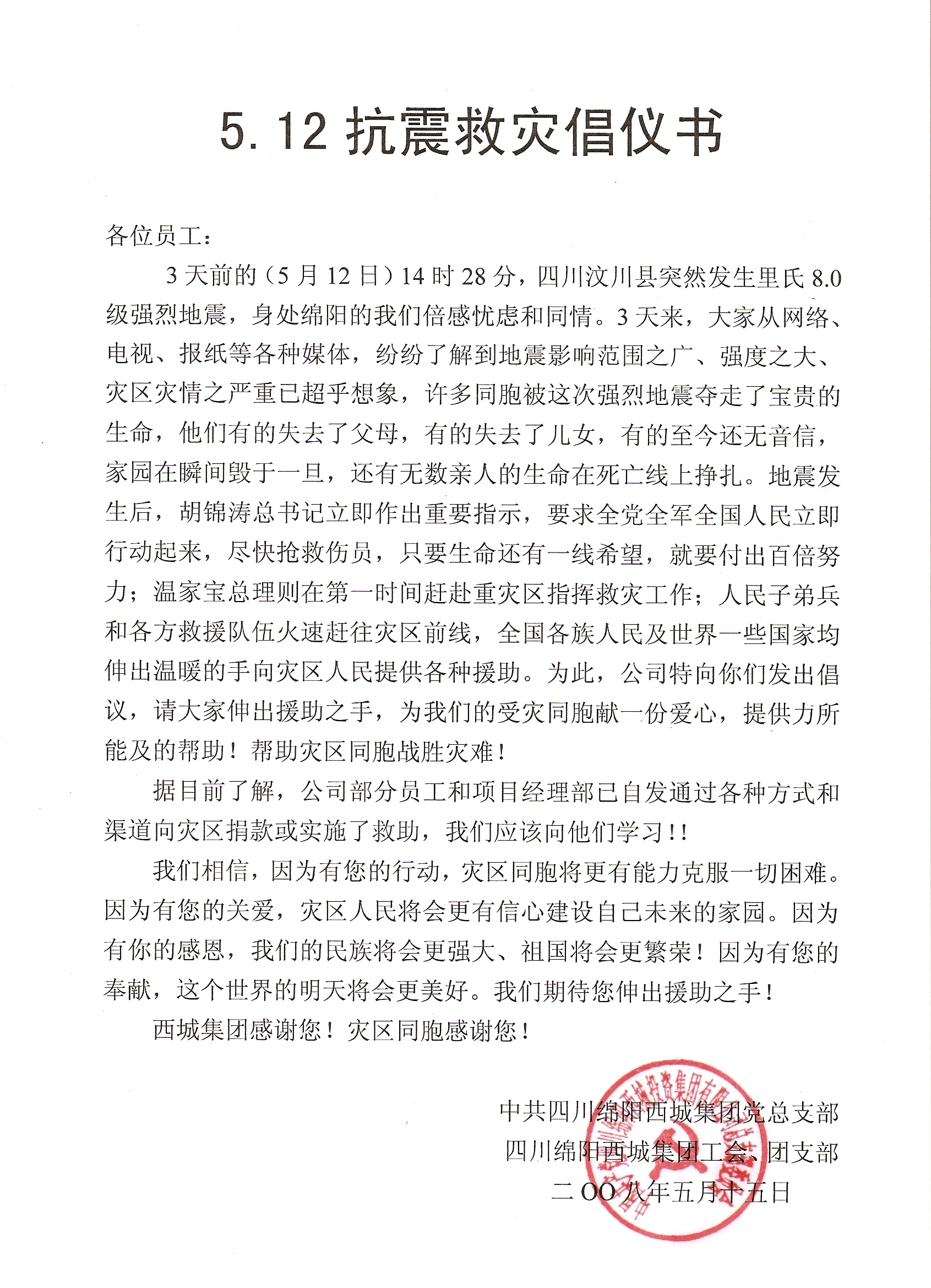 5.12抗震救灾倡仪书