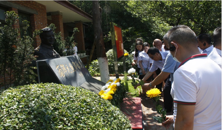 缅怀仪式上党员同志们纷纷向两弹元勋邓稼先塑像献花