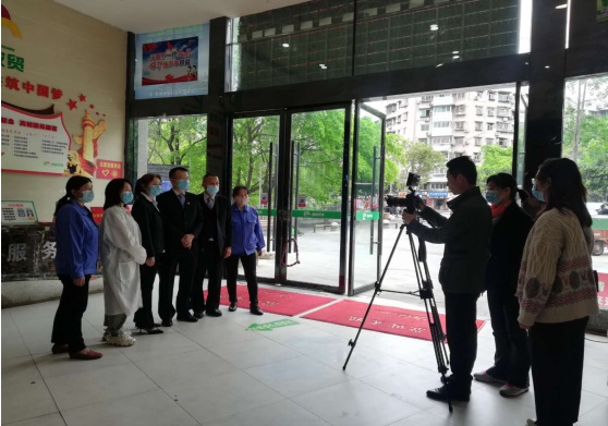市涪城区总工会在西城平政农贸市场拍摄“五一工人先锋号”表彰视频