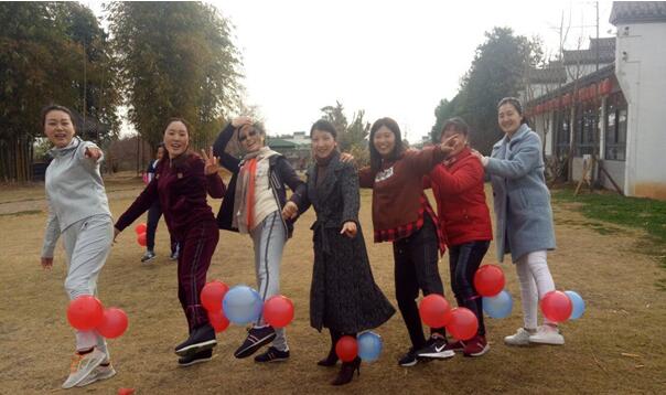接下来,进行整队活动分组,开始“熙和阳光,自由飞翔”三.八妇女节主题趣味活动:“双人背靠抱团踩气球、分组运乒乓球接力赛、单人跳绳比赛等项目,让现场气氛紧张激烈,队员们热情高涨,使出浑身解数,斗智斗勇,力争上游,各组队员纷纷为所在队伍加油打气,整个活动现场洋溢着热情、喜悦的热闹氛围。