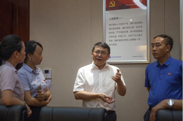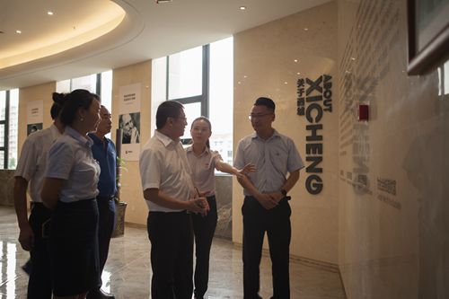 8月3日上午,四川省委组织部处长张大奇,在绵阳市委组织部副部长、市非公经济和社会组织工委书记卿官亮,涪城区委常委、组织部副部长王琳玲等领导的陪同下莅临西城集团,现场调研集团党建工作,并检查、指导“两学一做”专项活动开展情况。涪城区城郊乡党委副书记冯凯波等参加调研,西城集团党总支委副书记曹曦汇报相关情况。
